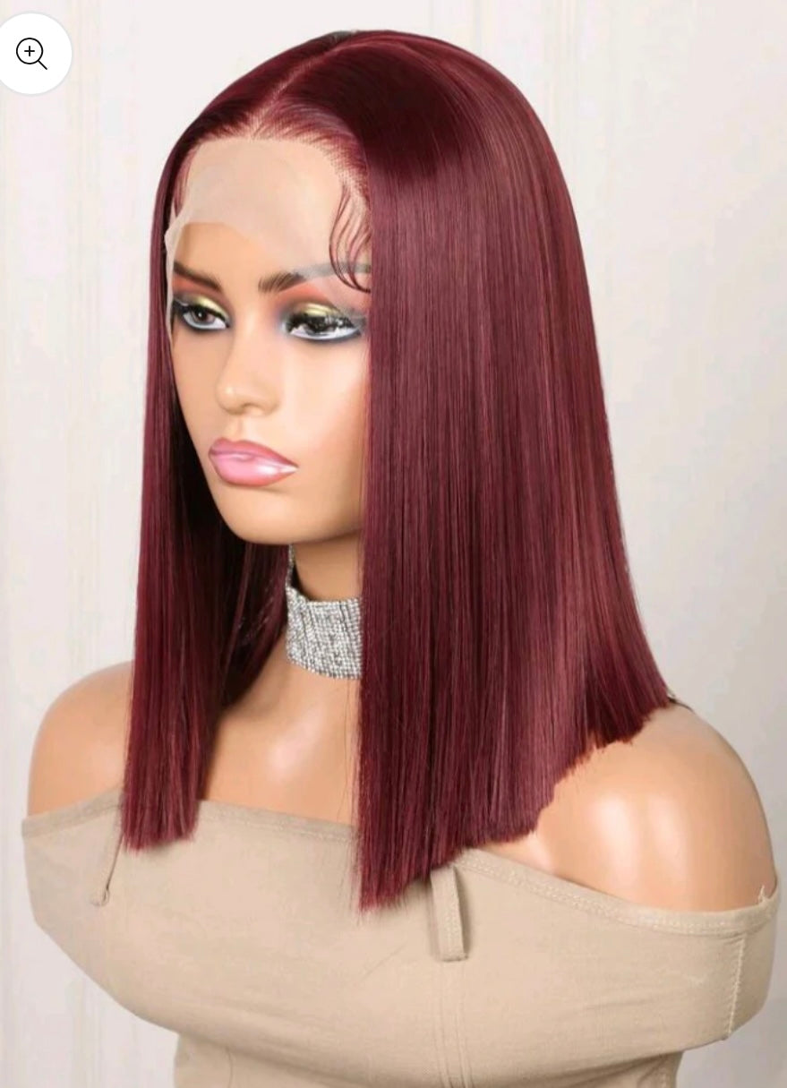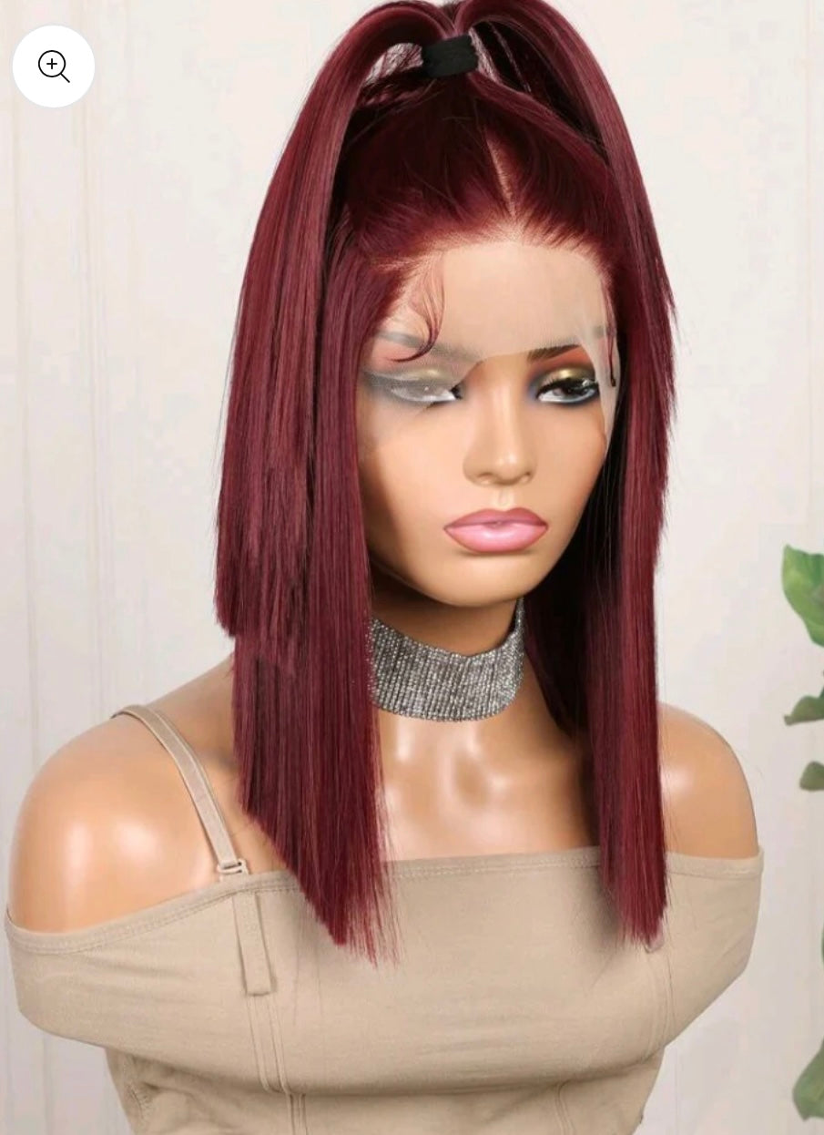 Introducing the Burgundy Lace Front Wig, a stunning addition to your hair collection. With beautiful 16 inch short bob hair in a vibrant burgundy color, this wig is made from heat resistant and breathable fiber for a natural look. With 180% density and a free parting, you'll love wearing it for parties and daily use.